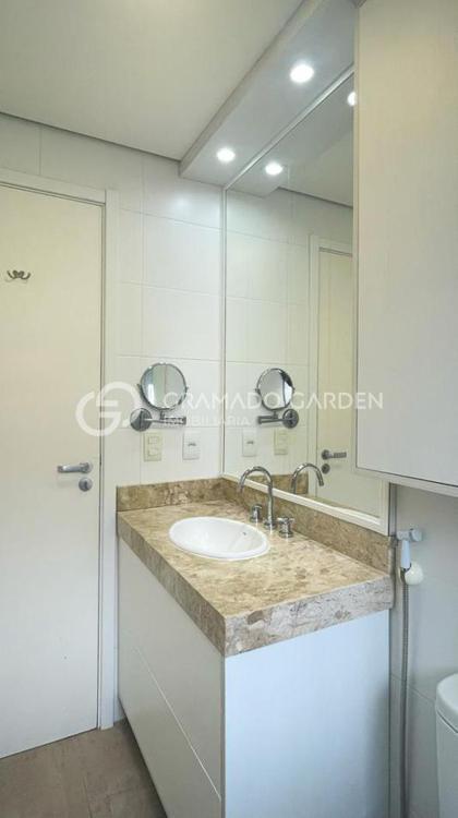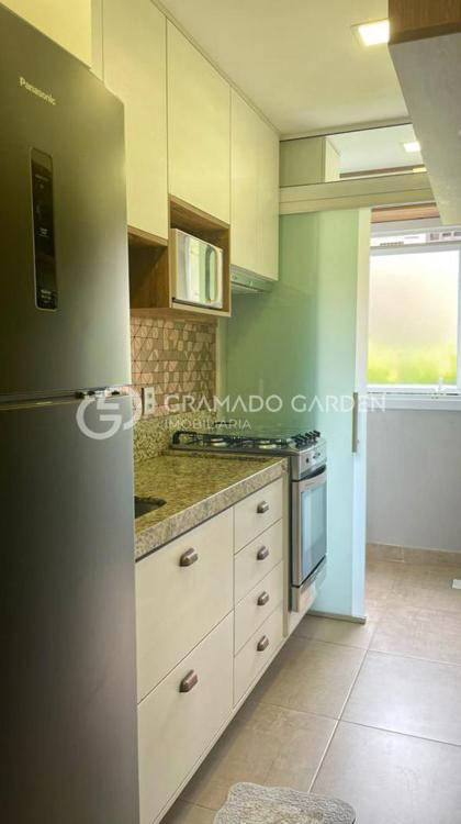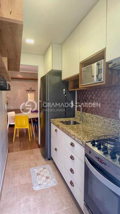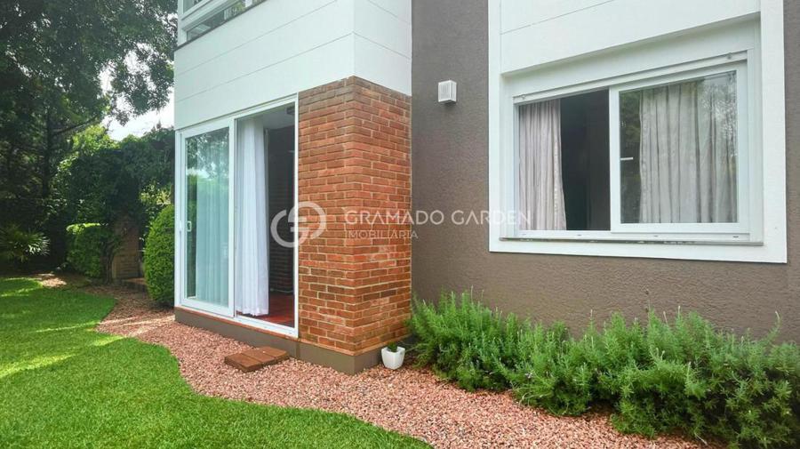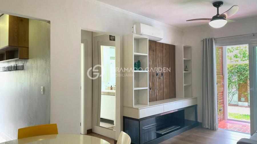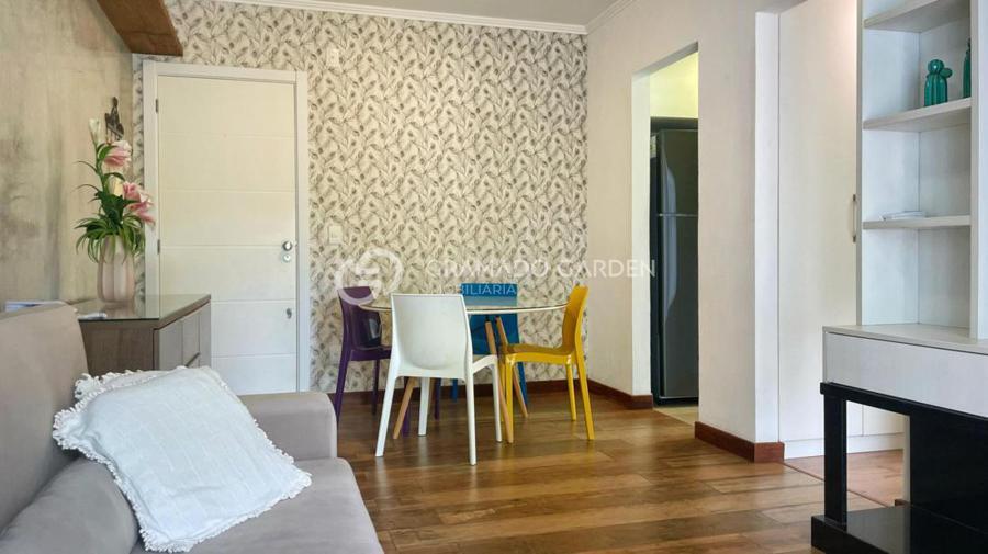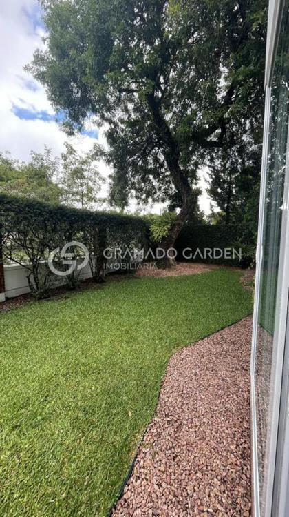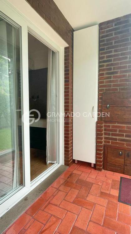O apartamento térreo conta com um dormitório, sala de estar e jantar integrados, além de uma charmosa sacada com churrasqueira, que proporciona acesso direto ao jardim, criando uma sensação única de casa. Com ótima orientação solar, os ambientes recebem iluminação natural.