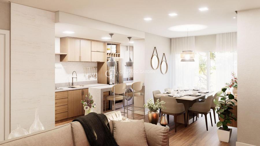 Apartamento composto por 01 dormitório, living 02 ambientes com sacada e espera para lareira, cozinha americana com churrasqueira e área de serviço. Espera para split e calefação, pisos vinílico e porcelanato, 01 vaga de garagem.