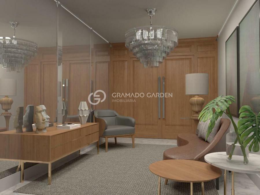 Imobiliária Gramado Garden vende!Apartamento de alto padrão em Gramado. Duas suítes, lavabo. Uma vaga de garagem. 150,61m2 privativos. Apartamentos com Porcelanato- Churrasqueira- Esquadrias Sierra, padrão Europeu- Lareira e Móveis Sierra