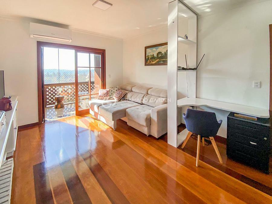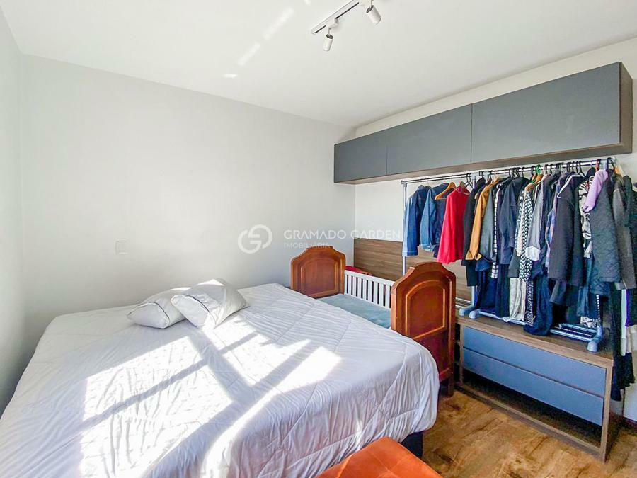 Imobiliária Gramado Garden Vende!!!Amplo e bem localizado apartamento com 2 dormitórios (1 suíte com hidromassagem), totalmente mobiliado e equipado, com excelente iluminação em todos os ambientes e linda vista, tanto das janelas dos quartos como da sacada da sala. Há splits e água quente já instalados. Gás central com medidores individuais. A sala é espaçosa, com dois ambientes e possui lareira. A cozinha também é ampla, com muitos armários e churrasqueira. Há também área de serviços com lavanderia. Uma vaga de garagem coberta.O condomínio, localizado em bairro nobre, em uma rua arborizada, tranquila e elegante, próximo ao Lago Negro, possui elevador e zelador.Excelente opção para moradia ou veraneio e com grande potencial locação por temporada!Recado do Gerente:Estimado(a) Cliente! Se esta oferta atende aos requisitos da sua busca, entre em contato conosco. Nossa equipe está preparada para atendê-lo(a) da melhor maneira. Contem comigo pelo celular e whatsapp (54) 9 8443-9313.Um abraço e até breve, na maravilhosa Serra Gaúcha.Yago André Bazzan