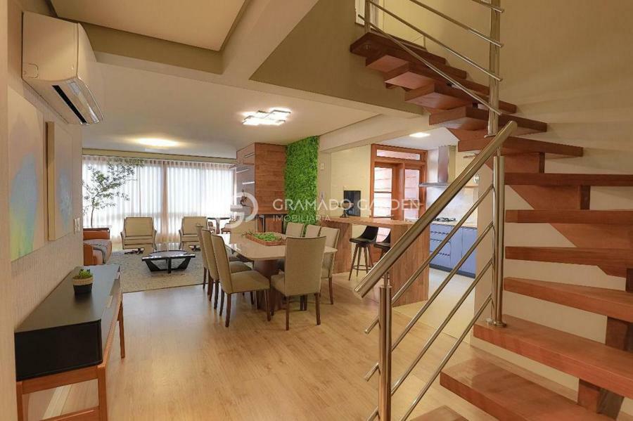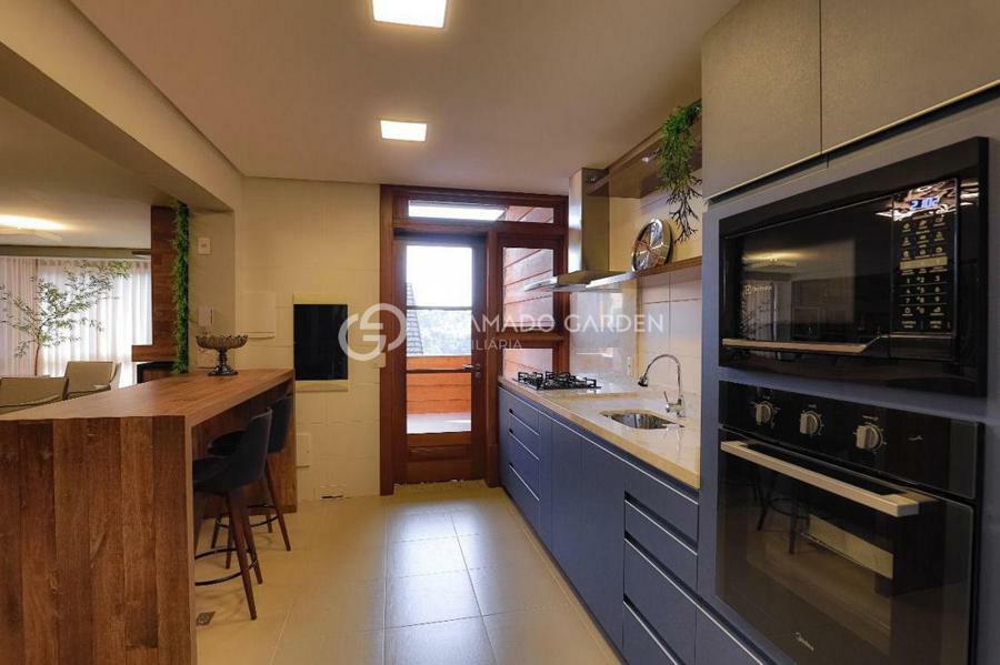Cobertura com 3 Dormitorios sendo 1 suíte, mobiliada, equipada e decorada com amplo living, com ambientes integrados, tendo uma sala de estar e jantar e um charme aparte fica para lareira revestida com Marmore e madeira de Lei, churrasqueira para aproveitar com seus familiares e amigos, cozinha ampla , sacada totalmente integrada, esperas para calefação, tv a cabo, internet.