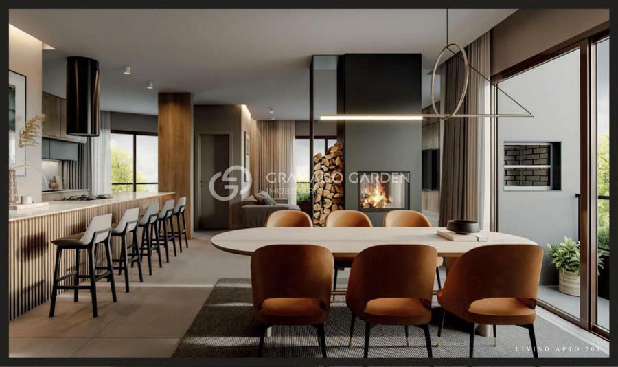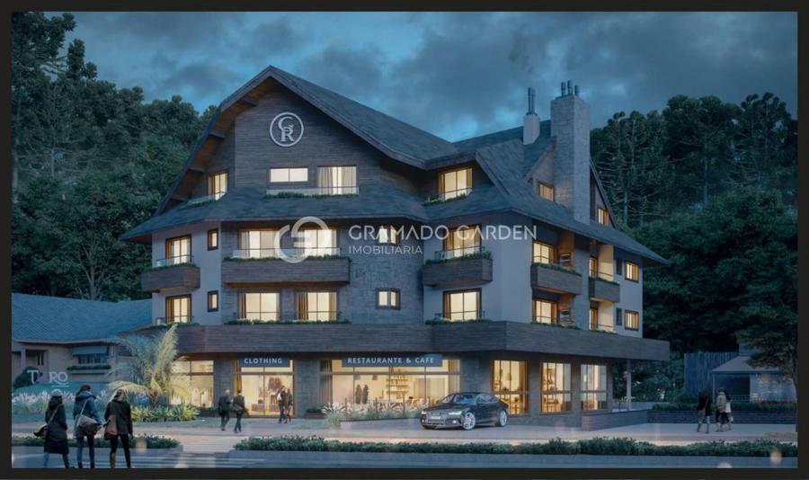 Lançamento no centro de Gramado, empreendimento localizado a 800 metros da Rua Coberta! Apartamento duplex com 131,16m² privativos, conta com 03 suítes, living de 02 ambientes divididos em sala de estar com lareira e sacada gourmet com churrasqueira e sala de jantar, ampla cozinha americana, área de serviço e 03 vagas de garagem.Esquadrias em PVC premium com vidros duplos, afastamento em todas as dividas, pisos laminado e porcelanato, forro de gesso em todo o apartamento, metais e louças inclusos, esperas para ar condicionado e calefação, lareiras a lenha em todos os apartamentos.Empreendimento totalmente exclusivo e com apenas 7 unidades residenciais a venda, com mais 02 salas comerciais no térreo.Apartamentos com mais de 100m² privativos, com plantas diferentes e totalmente customizáveis para a sua melhor experiência.