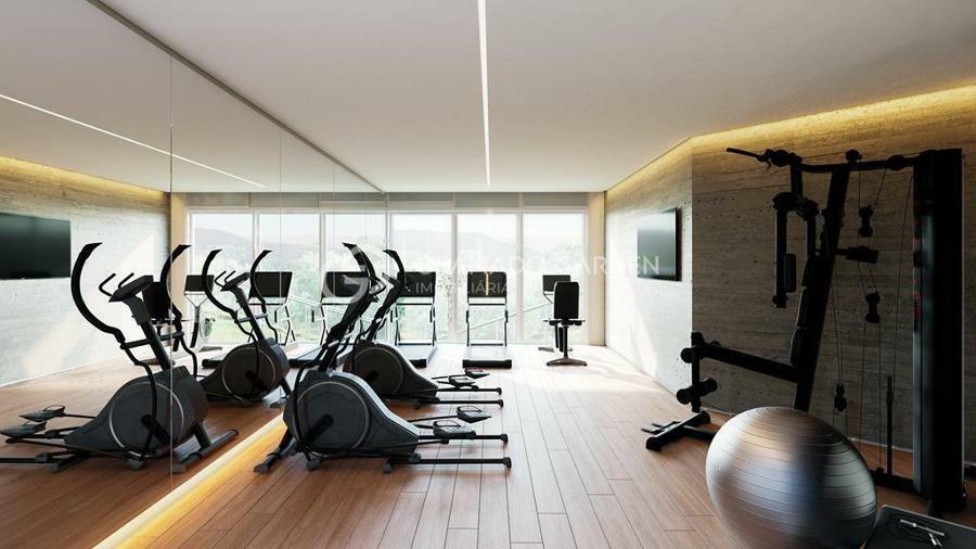 No apartamento- Espera para calefação- Espera para lareira- Piso laminado- Esquadrias de PVC com vidro duplo- Espera tomada individual para carregamento carro- Closet- Cozinha- Área de Serviço- Sala de Estar- Sacada- Infraestrutura para água quente- Acabamento em gesso- Banheiro Social- Lavabo- Sala de jantar- Espera para split- Porcelanato- Churrasqueira.