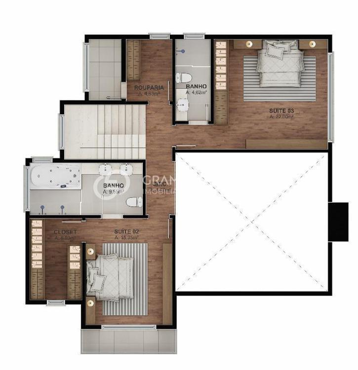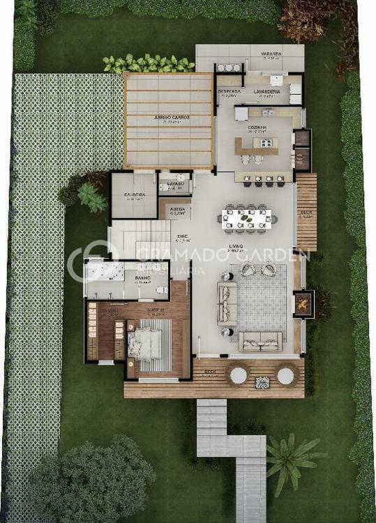 Linda casa com 282,86 m² de área privativa, 3 suítes sendo 2 master e 1 closet, living 2 ambientes com lareira e deck de acesso, hall, lavabo, cozinha com churrasqueira, sala técnica para caldeira, piso porcelanato e vinílico, esquadrias de pvc com vidro duplo, espera para calefação e split, lavanderia, despensa, adega, rouparia e 2 vagas na garagem.