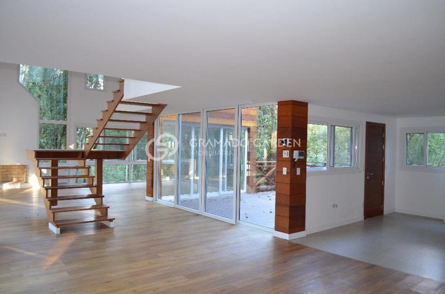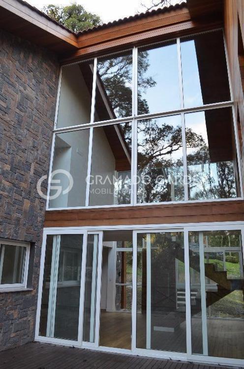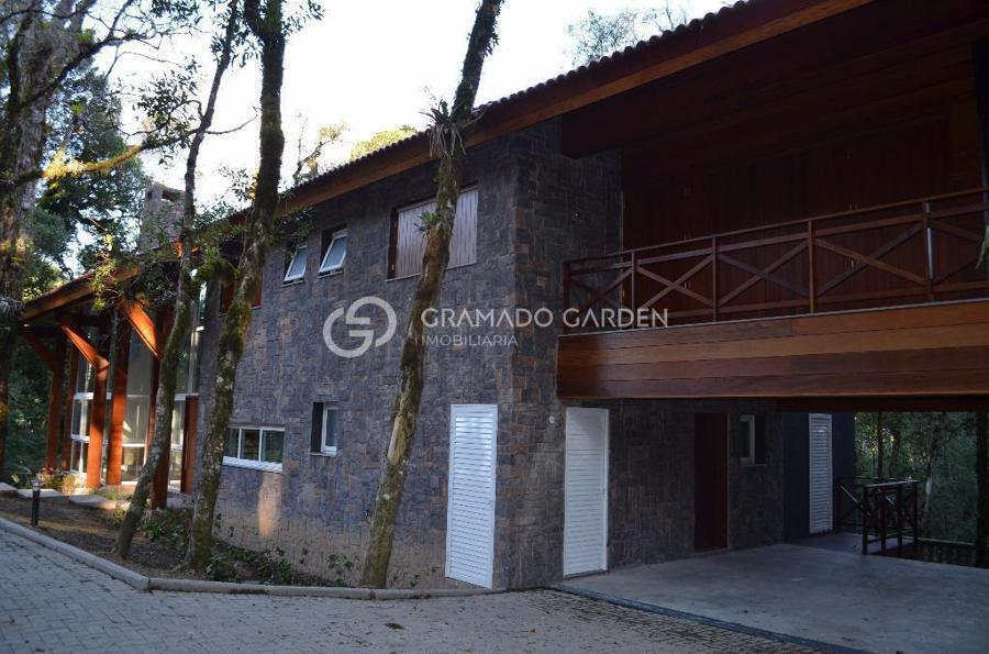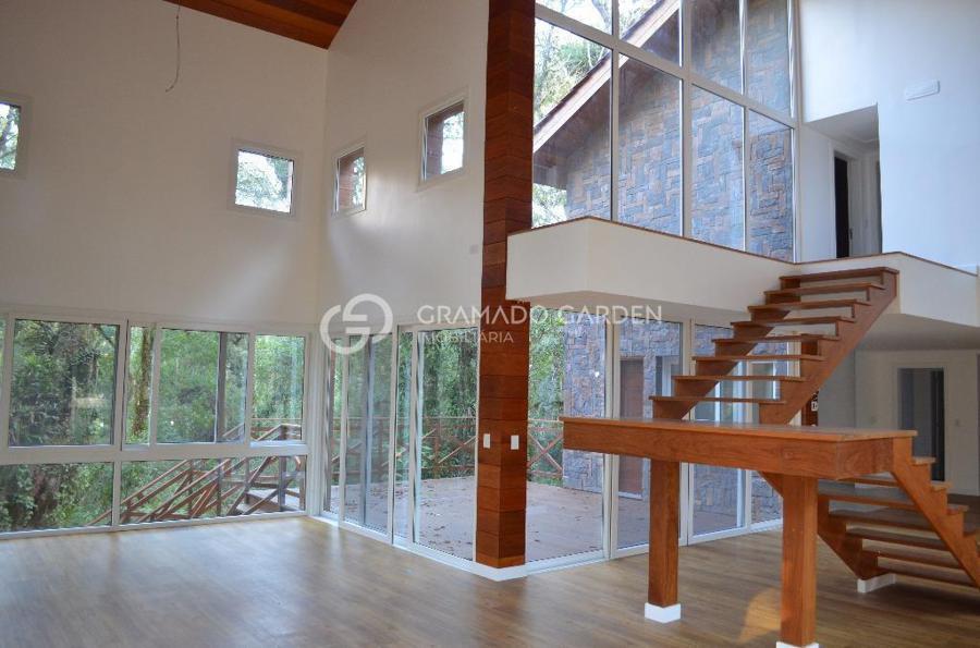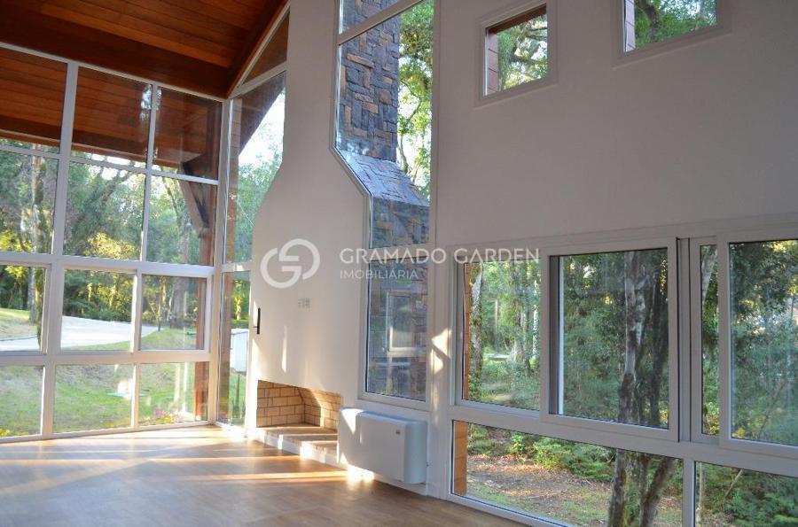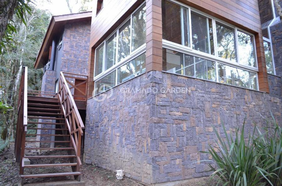 Linda casa no condomínio O Bosque um dos mais belos de Gramado. Segurança e Conforto junto a Natureza! Casa estilo rústico com 385m², 4 suítes, sendo 1 master com sacada, sala de estar com lareira, sala de jantar, cozinha gourmet, área de serviço, lavabo, adega, deposito. Sistema de automação da iluminação interna, monitoramento remoto de temperatura e umidade, câmeras de segurança com wi-fi e sensor de foto enviado por e-mail, esquadrias em PVC, vidros duplos, tablet para controle dos sistemas, sistema de calefação a caldeira e caldeira com comando remoto, piso aquecido. Tudo isto em um belo Terreno com 1100 m² junto a natureza. O Bosque confere aos proprietários destes imóveis maior privacidade e espaços verdes em seu entorno, diferencial único entre os condomínios em Gramado. Com completa infraestrutura de lazer e segurança, alto padrão em suas instalações e conceituação. O Bosque é uma excelente escolha para você aliar conforto, praticidade e qualidade de vida para sua família!